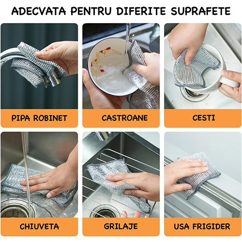 Eficienta: Spre deosebire de buretii metalici conventionali, aceste lavete protejeaza mainile si asigura o curatenie profunda fara reziduuri.